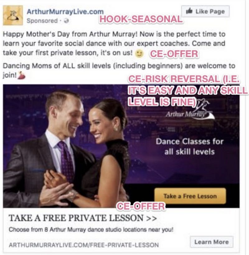 (Digital Ads Example) Here’s an ad that does lead generation for a dance studio: